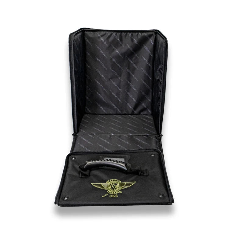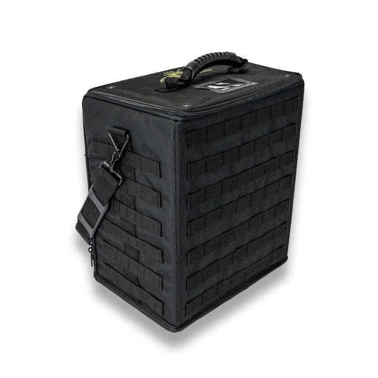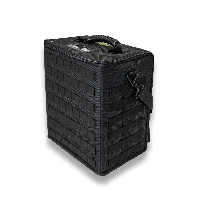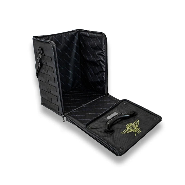 The P.A.C.K. (Personal Army Combat Kit) 352 can fit 14.5 inches (368 mm) of Battle Foam Small (BFS) size foam trays (11.5W x 7.75L"). Its rugged, black Ballistic Nylon exterior protects a hard plastic interior built for strength and durability. This bag was designed for airport travel and meets all FAA regulations for carryon luggage. The P.A.C.K. 352 offers a molle system, which allows you to further customize this bag to fit your specific storage and transportation needs. Molle accessories offer storage solutions for tablets and other small books, dice and other gaming accessories as well as cell phones and other personal items. It also has two thin front pockets built into this bag that will hold papers and small/thin books.