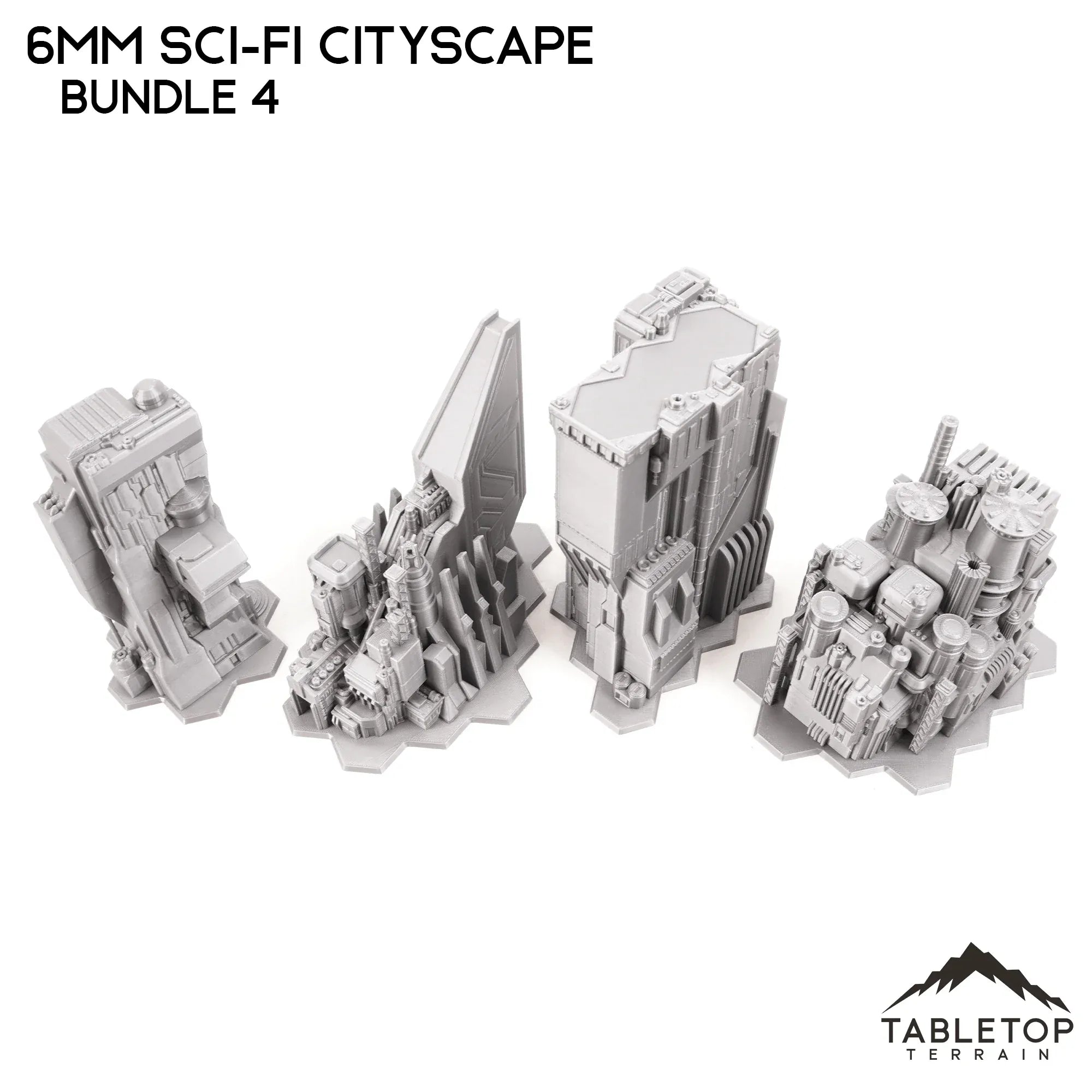 A set of 4 6mm Sci-Fi Cityscape buildings. You can choose to have them come with or without hexes. It would work great in any 6mm mech scale tabletop wargame.