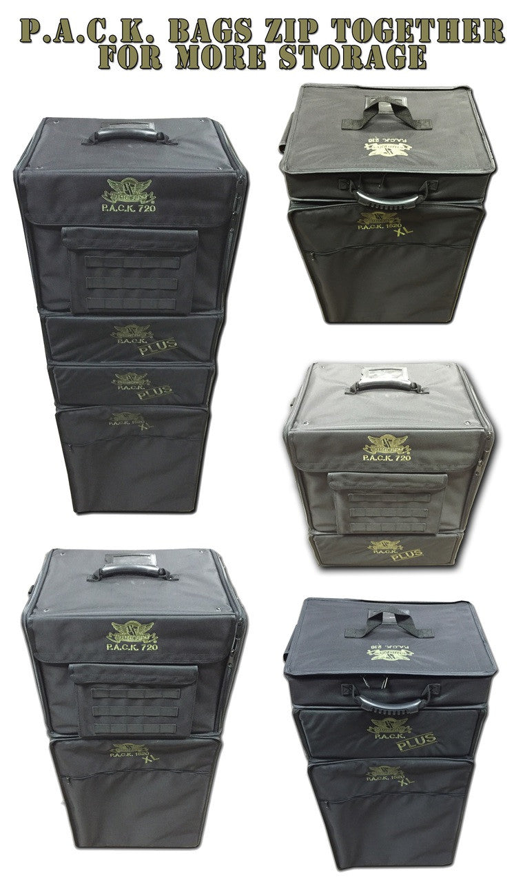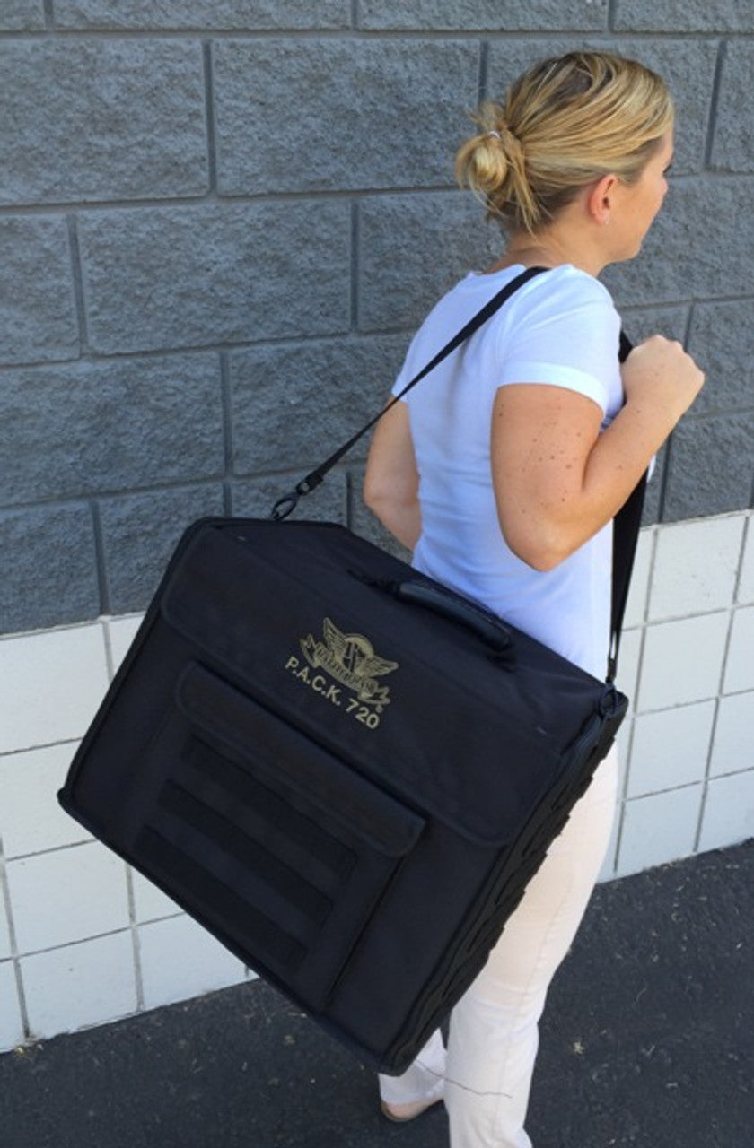 The P.A.C.K. (Personal Army Combat Kit) 720 can fit 12.5 inches (318 mm) of Battle Foam Large (BFL) size foam trays (15.5W x 12L"). Its rugged, black Ballistic Nylon exterior protects a hard plastic interior built for strength and durability. The P.A.C.K. 720 also has a molle system, which allows you to further customize this bag to fit your specific storage and transportation needs. Molle accessories (not included) offer storage solutions for tablets and books, dice and other gaming accessories as well as cell phones and additional personal items. Please check with your airline to see if it exceeds their size limits to ensure it will meet your needs with regard to air travel.