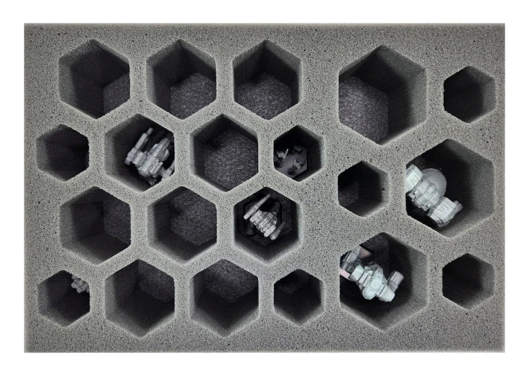 The Battle Foam C-160 Box is an ideal box for any type of skirmish game, such as Kill Team, Blood Bowl, Infinity and similar size games. The Battle Foam C-160 box can fit 7.5 inches (191 mm) of Battle Foam Small (BFS) size foam trays (11.5W x 7.75L) foam. These boxes are perfect for stacking in your closet or transporting if necessary. The Battle Foam logo makes for a more exciting box. Store your models with style!