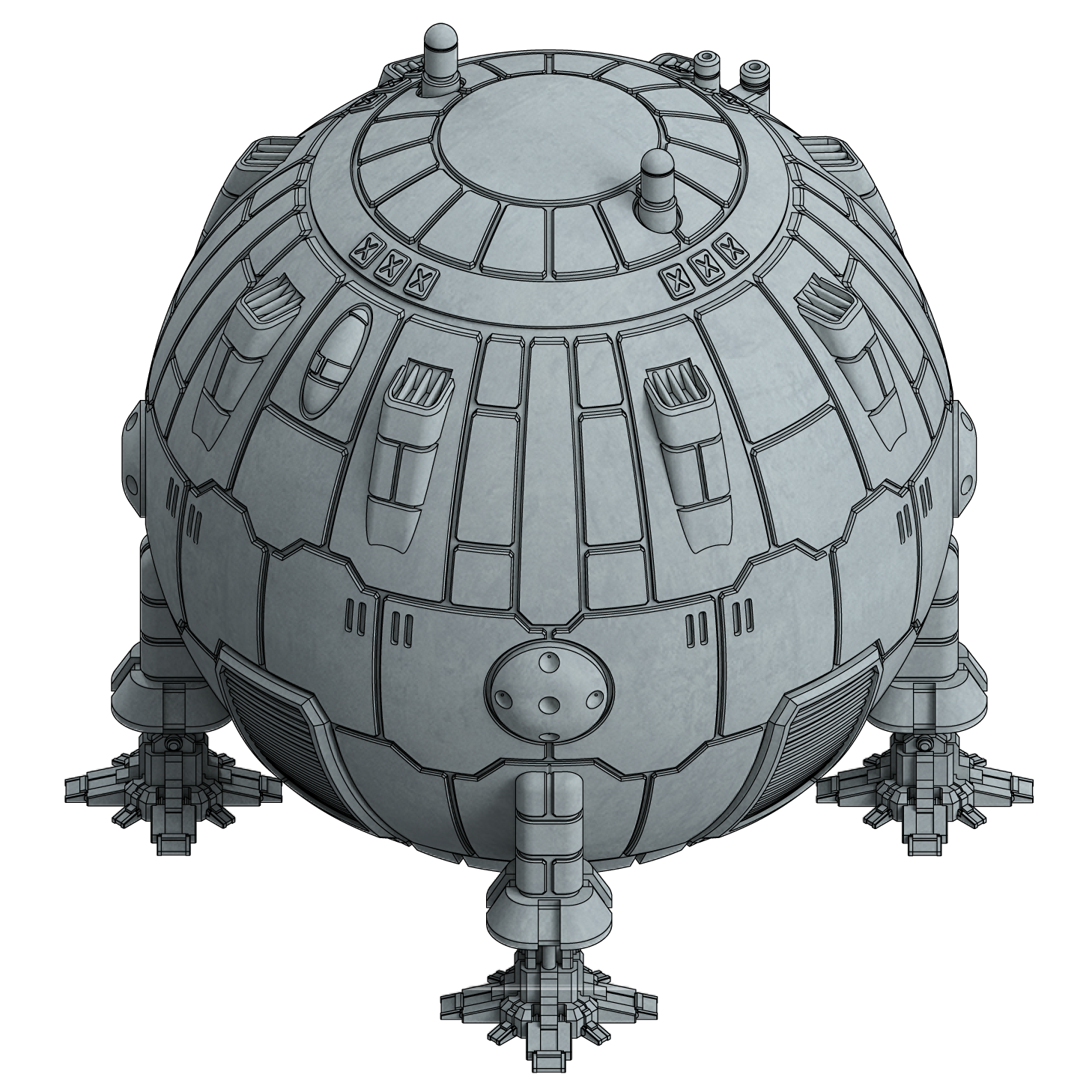 The smallest of the spaceborne spheres, this Dropshuttle is perfect for civilians, infantry, or as a map scale stand-in for a larger spheroid dropship.