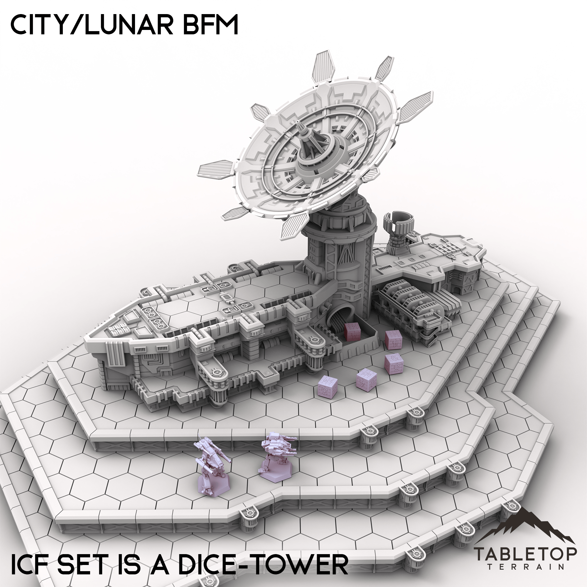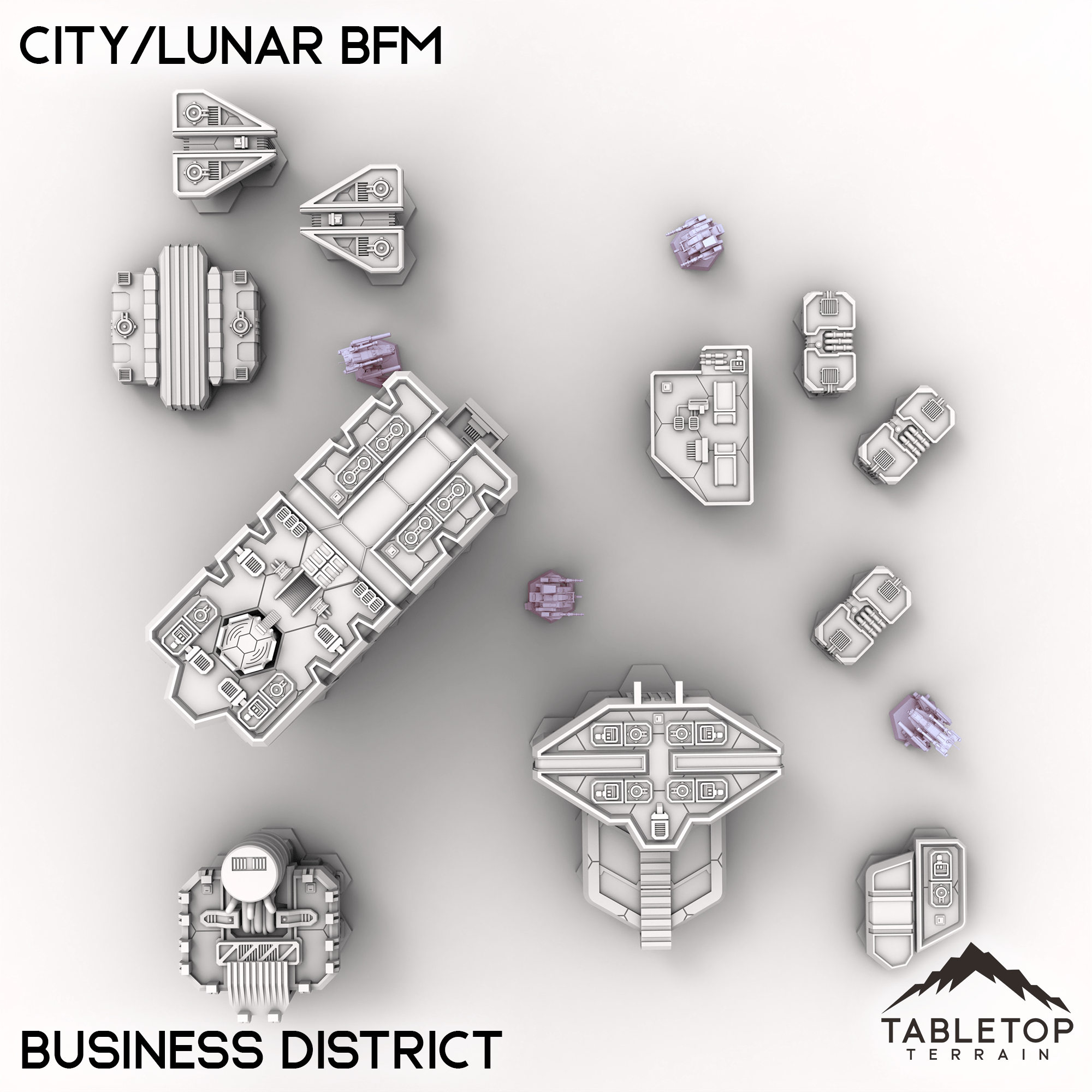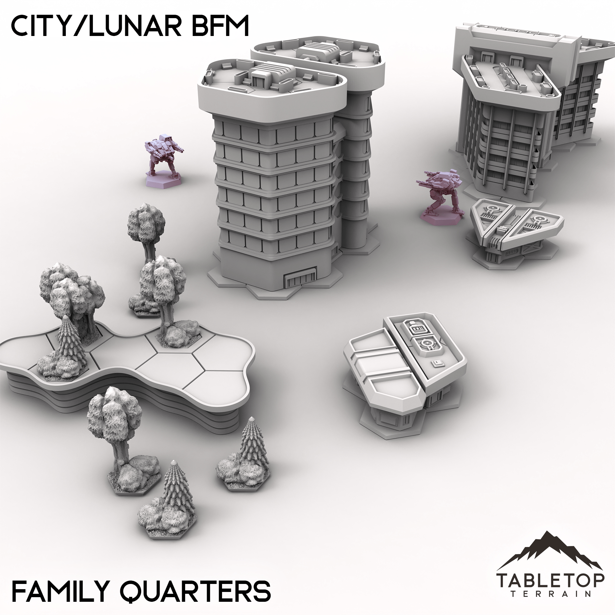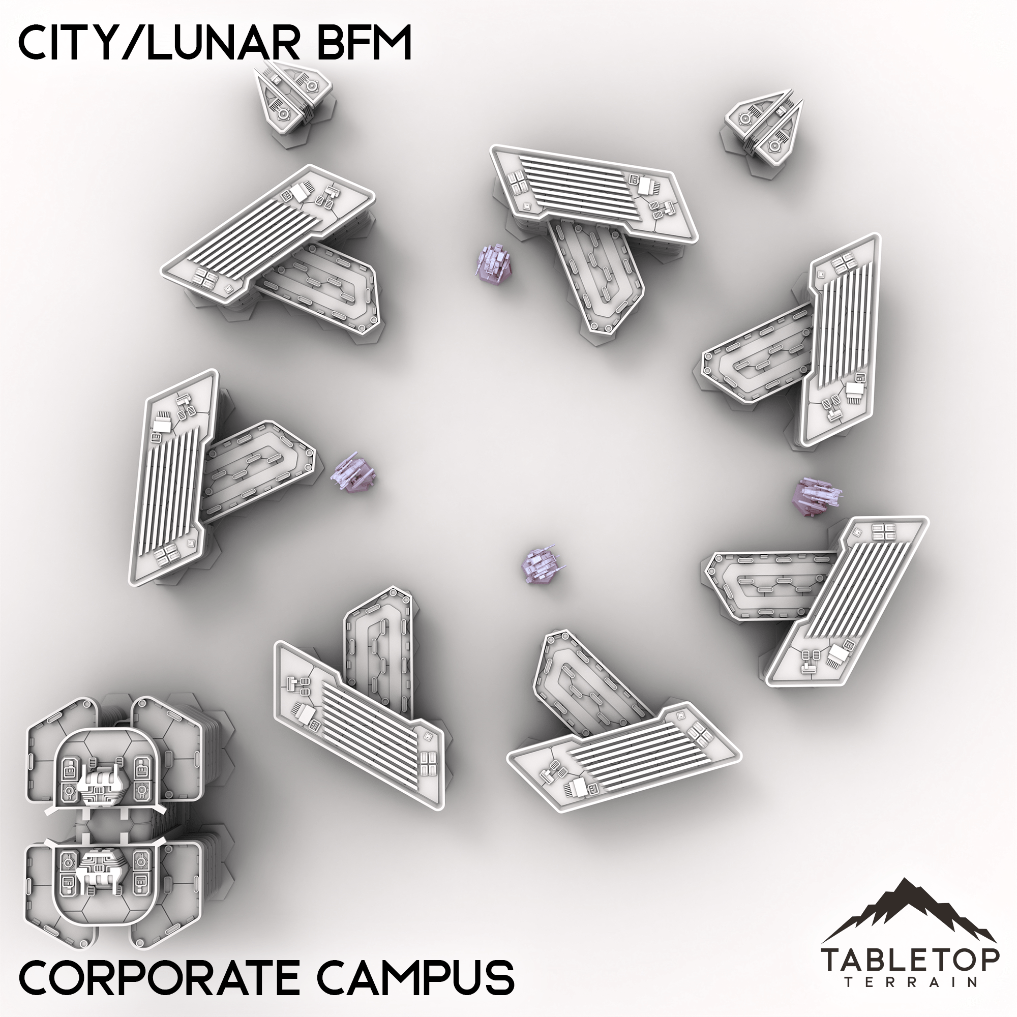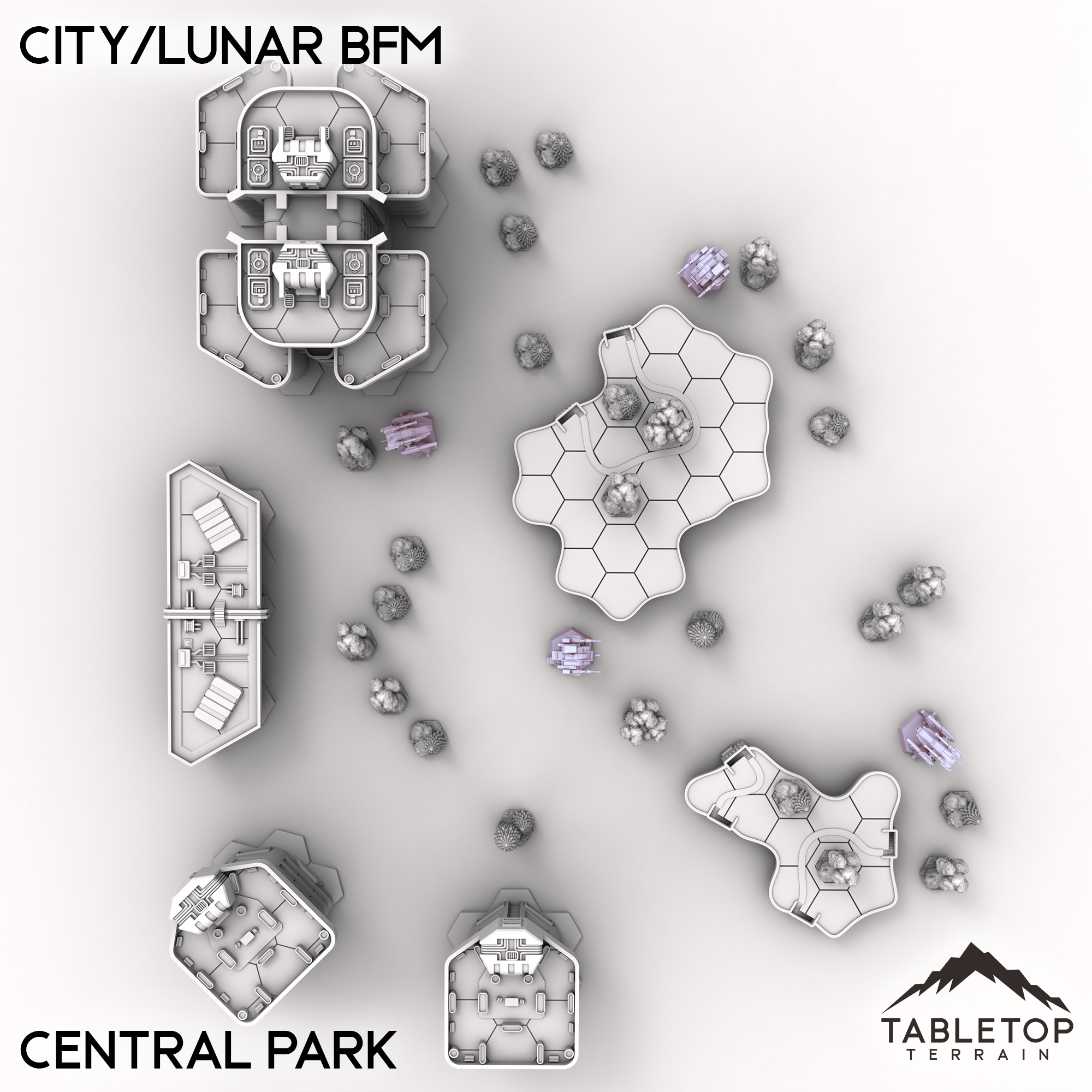 Wage battle across one of our largest table sets ever with the City/Lunar BFM collection! This massive set combines 9 different map packs into 1 set-piece. Ranging from corporate districts, to living quarters, and even parks and natural hills, this set is made to handle an entire city layout.