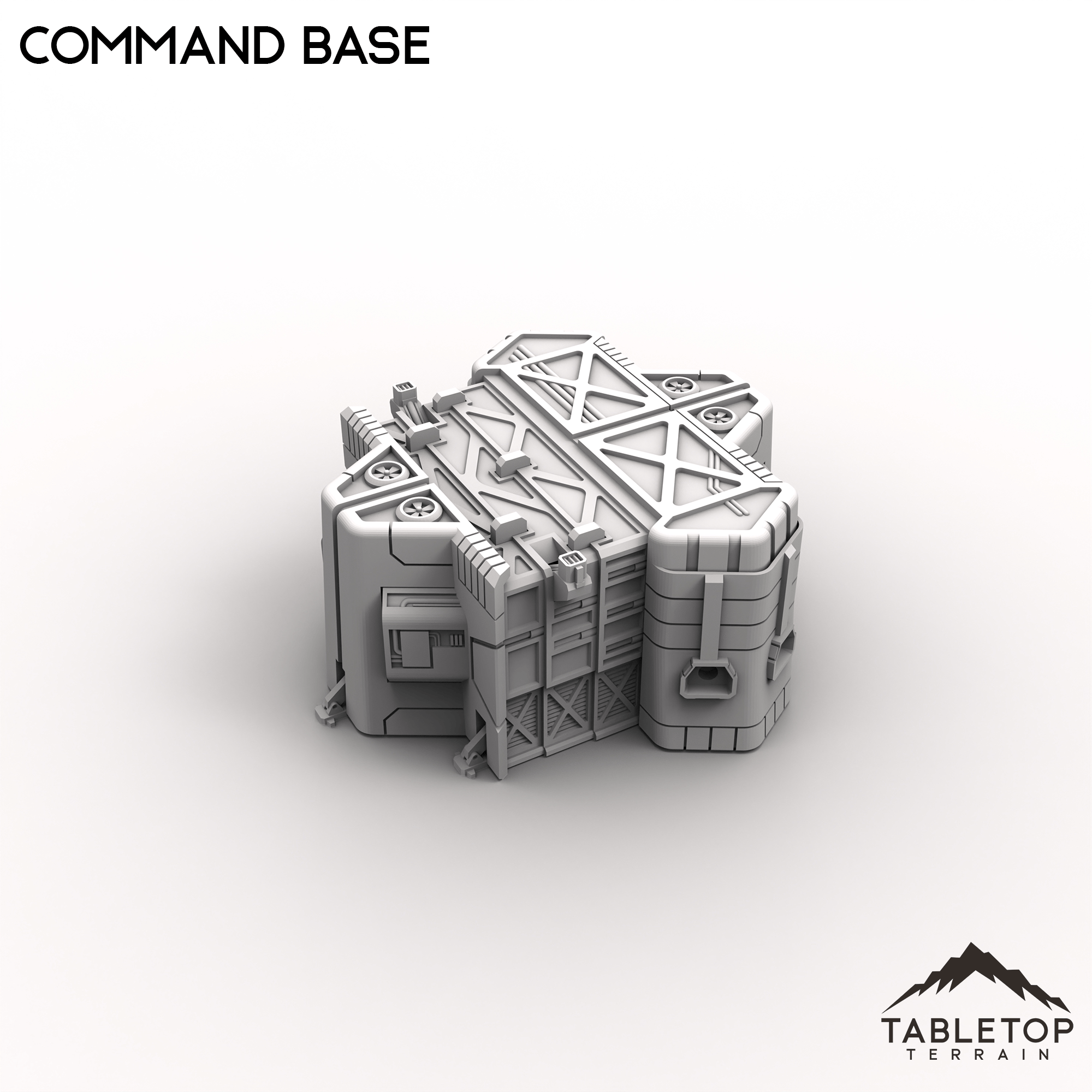 HEXTECH Drop Base Delta is a set of prefab buildings, including personnel quarters and power supply. The set includes corridors for attached the buildings in any way you need for your tabletop.
