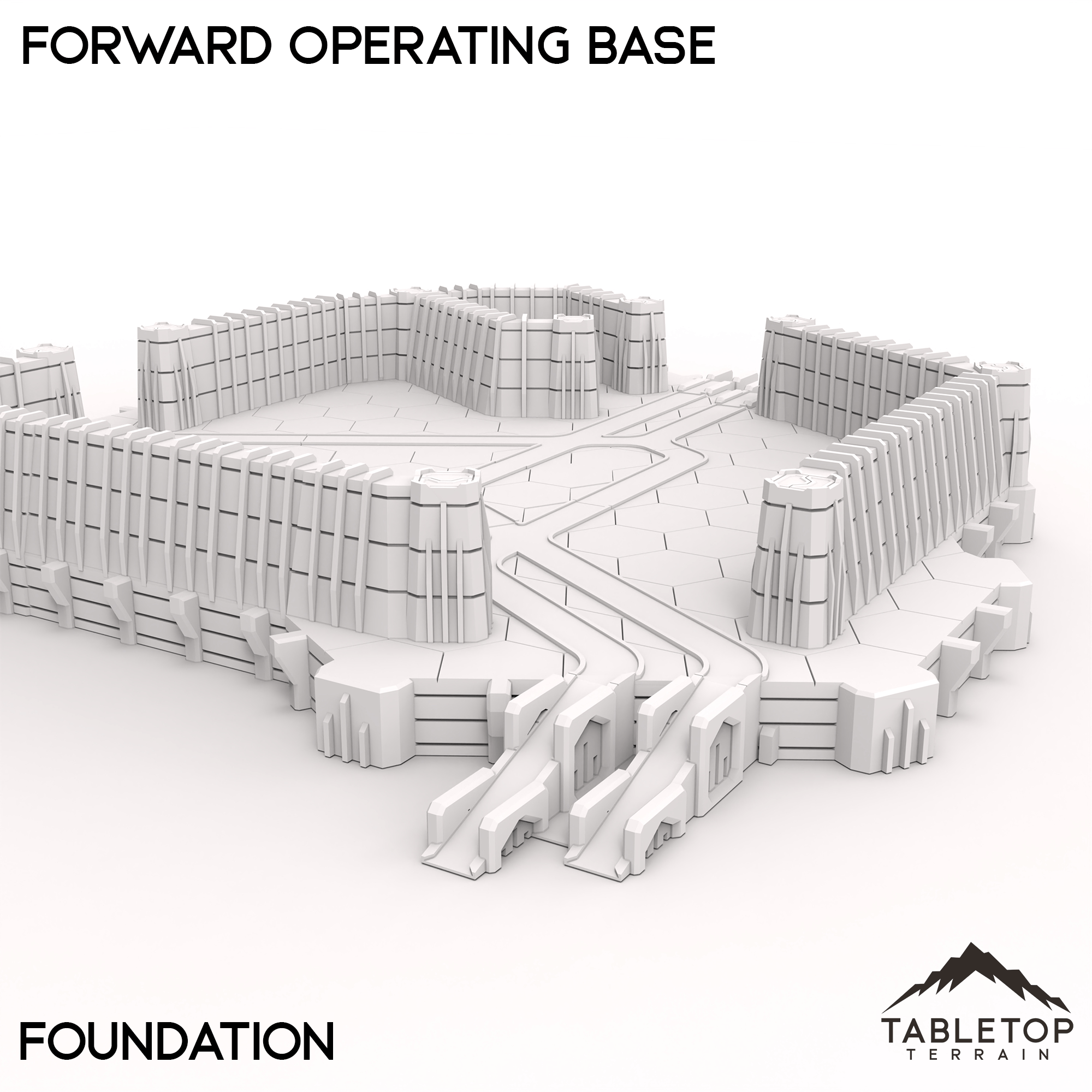 The Forward Operating Base is a sprawling, stand-alone industrial zone for your 6mm cities! Like our Riverside Communications Center set, these sets are made up one a semi-modular foundation and a mix of hexed buildings. This specific set features power stations, and mech repair facilities. The complete set can be bought with the foundation and buildings together for a discounted price, but you can also purchase just the foundation or buildings pack separately if desired.