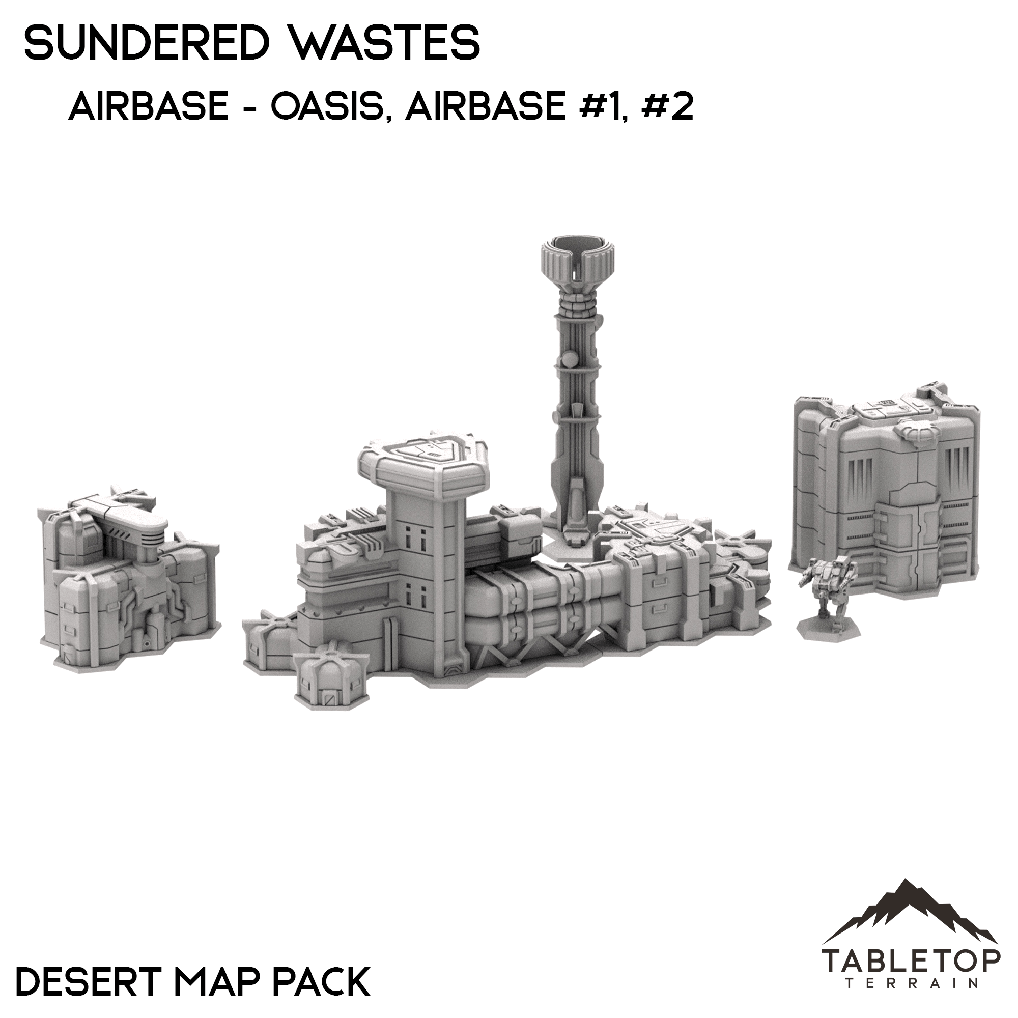 While Volumes 1-10 consist of a series of hills, the Sundered Wastes Airbase contains a series of armored structures intended to service and maintain air assets in remote locations. The buildings for the Airbase come with removable hexes if you wish to play them without the hex bases.
