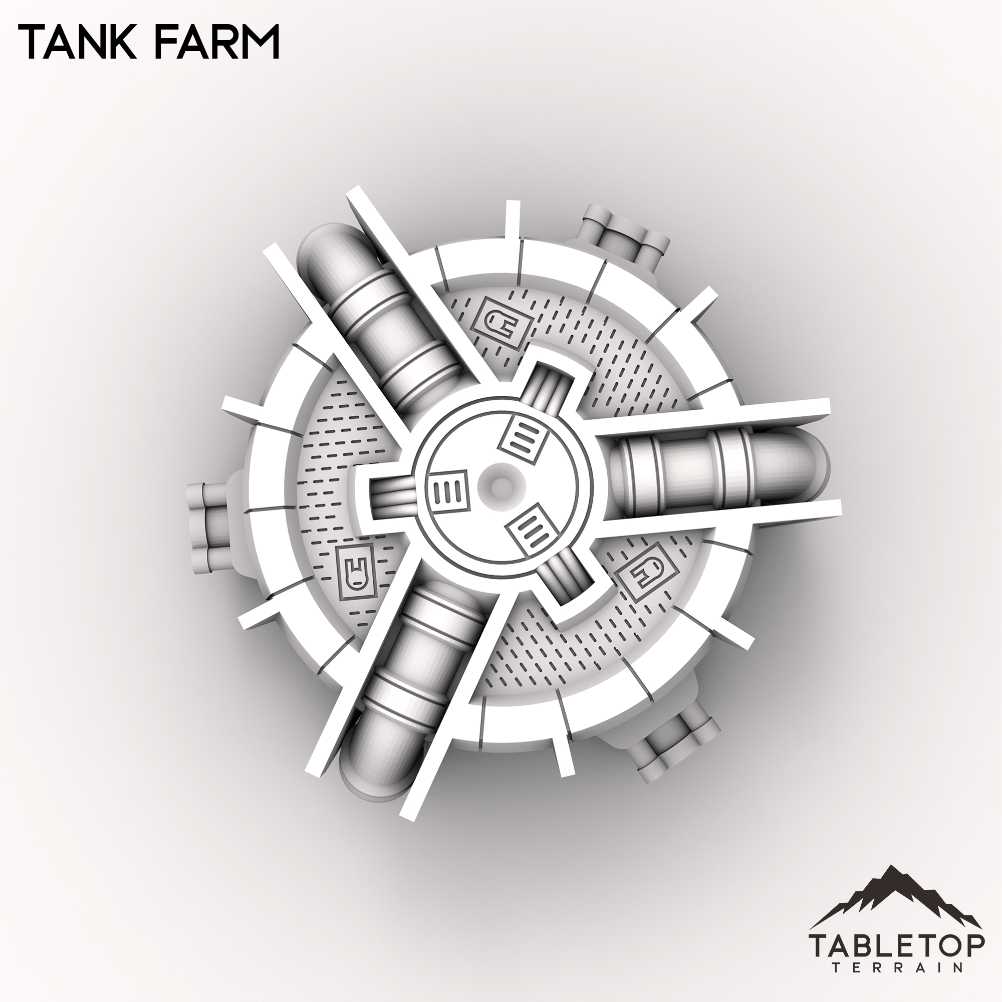 HEXTECH Industrial Fluidworks is a modular set of processing and storage plants, complete with a full set of pipes and connectors. The connections in the Fluidworks set are all fully compatible with the Power Complex sets. The Fluidworks can be used piece by piece as terrain scatter, or arranged into whatever type of layout you need. The styling of the Fluidworks set is made to match the look and feel of the Trinity City collection as well.