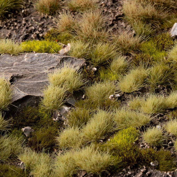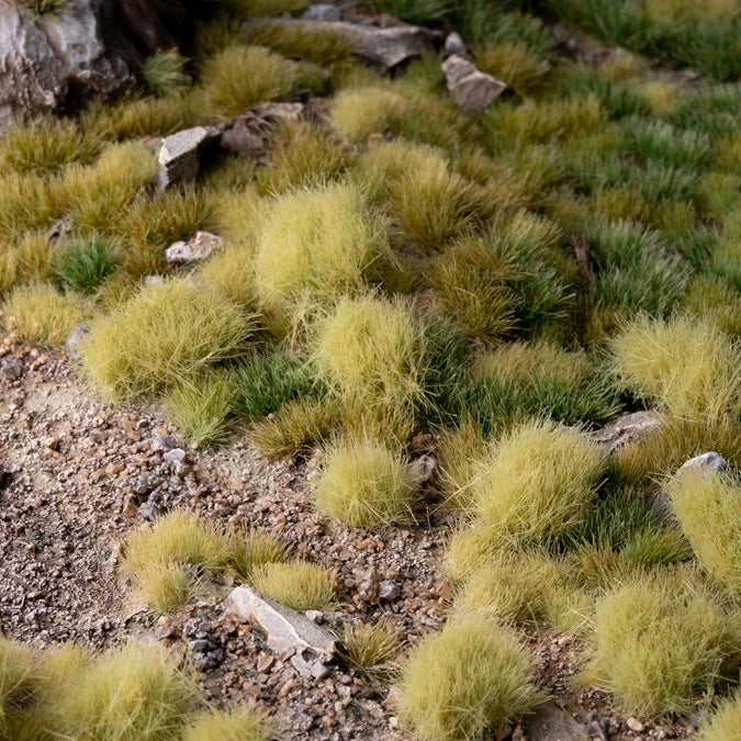 12MM - Tall tufts with a blend of green and beige colours. Best used to simulate light-coloured high grasses and sedges from many different scenarios. Used mixed with other sizes and colours give a realistic colour and height variance to your models, improving greatly your bases and dioramas.